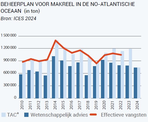 - zijn sinds enkele jaren de TAC’s en de vangsten van makreel hoger dan wat door wetenschappers wordt aanbevolen.